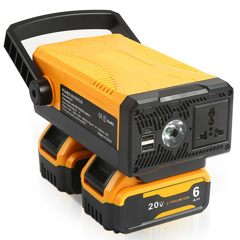 Inversor de corriente inalámbrico para exteriores, 20V para batería Dewalt Compatible con AC110V/150W tipo C, carga USB, inversor DIY, transformador de potencia